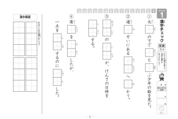 宿題用:1ユニット「漢字の音読」「漢字の書き方」各2ページ、「かくにんテスト」4ページ
