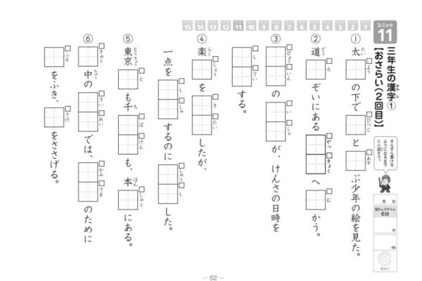 三年生全漢字おさらい4ユニット、まちがえやすい漢字1ユニットも収録されています。