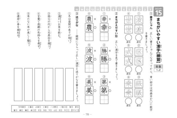 授業用:1ユニット「漢字の音読」「漢字の書き方」各1ページ、「かくにんテスト」2ページ