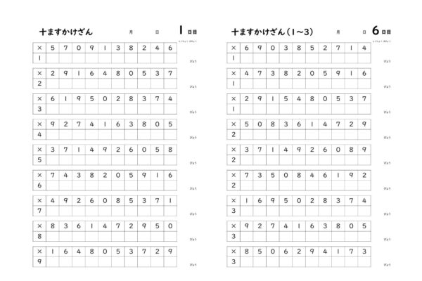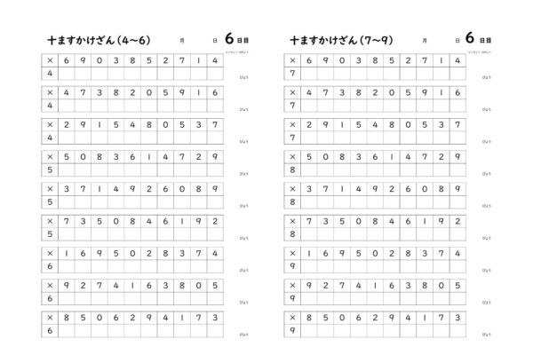 14日間で苦手を見つけて強化! 終えた後、見つけた苦手を九九①②を使ってより鍛えたり、五十・百ます計算に再度挑戦することがおすすめです。