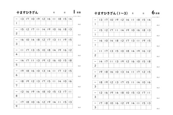 14日間で苦手を見つけて強化! 終えた後、見つけた苦手を十ますひき算を使ってより鍛えたり、五十・百ます計算に再度挑戦することがおすすめです。