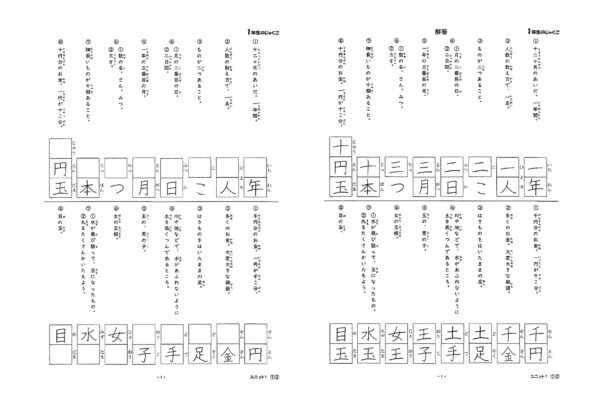 授業用:1ユニット「言葉と意味を読む」「言葉を書く」各1ページ、「チェックテスト」2ページ