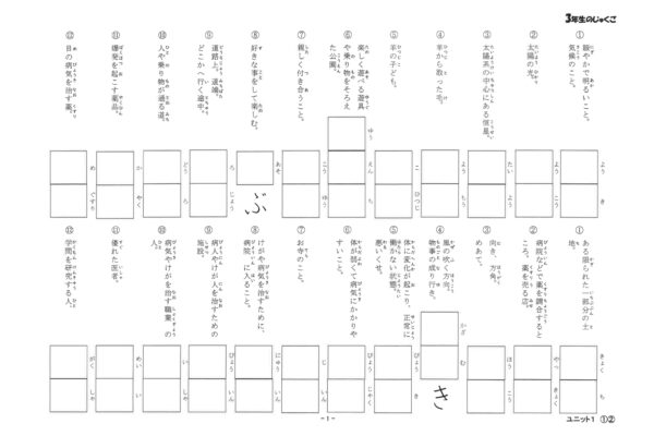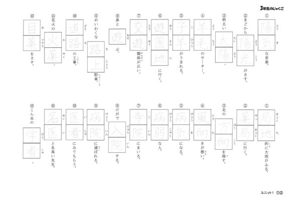 授業用:1ユニット「言葉と意味を読む」「言葉を書く」各1ページ、「チェックテスト」2ページ