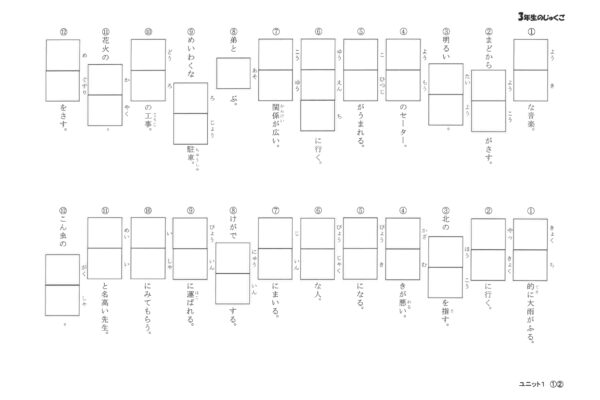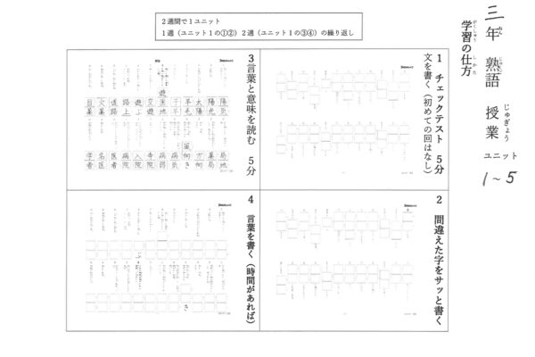 陰山式スコーラの教室で使用している『三年生の熟語』になります。