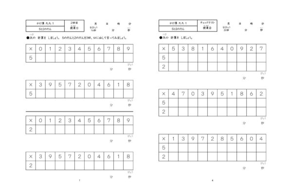九九①のステップ教材。終わったら、五十・百ます計算に挑戦してみましょう! 授業用:1ユニット問題4種類 授業用:1ユニット問題3種類×2