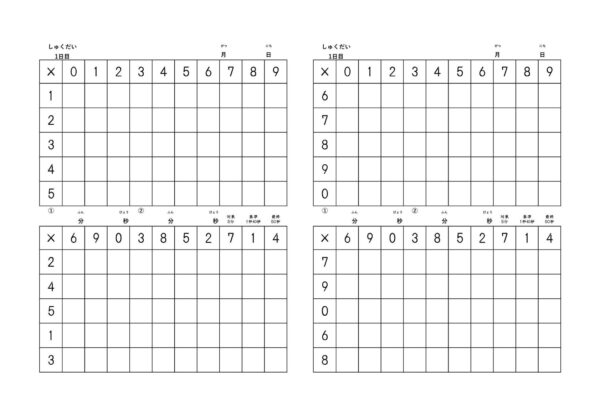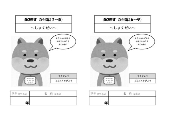 ×1~5と×6~9各4週分の2冊セット。 九九の次のステップ教材になります。