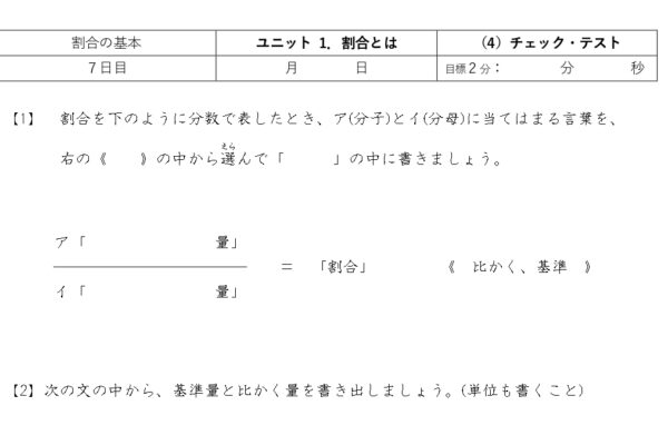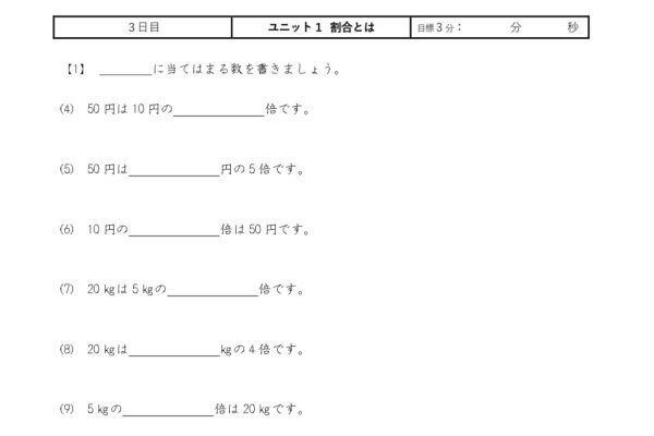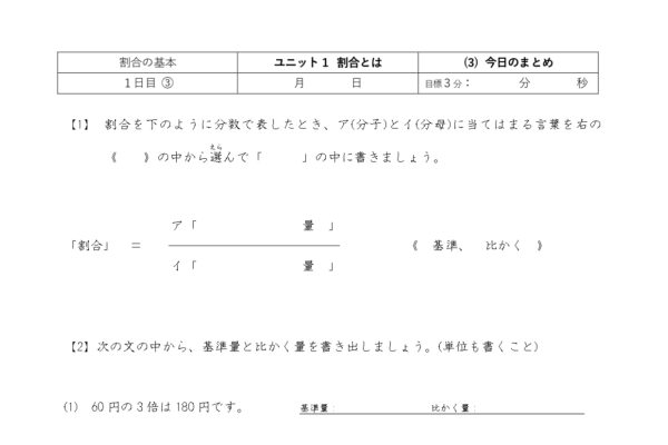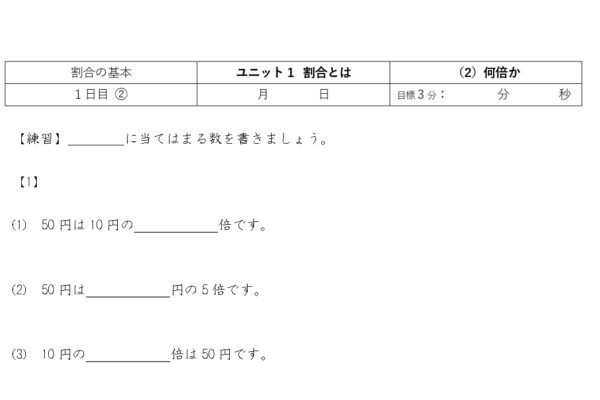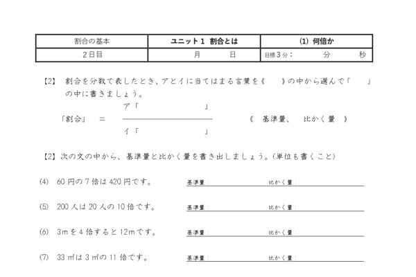 割合を7週で完結!スコーラで使用していた宿題用と授業用冊子を一冊にまとめました! 中学校の数学にもつながる重要な単元なため徹底反復必須です。 1、割合とは 2、割合を求める 3、割り切れないとき (四捨五入) 4、二つの量 5、百分率 6、歩合 7、百分率と歩合の四捨五入