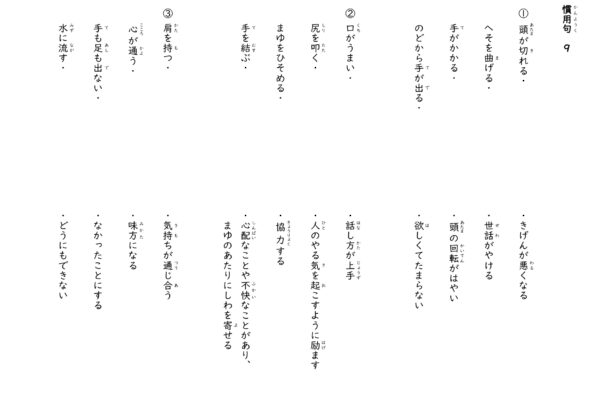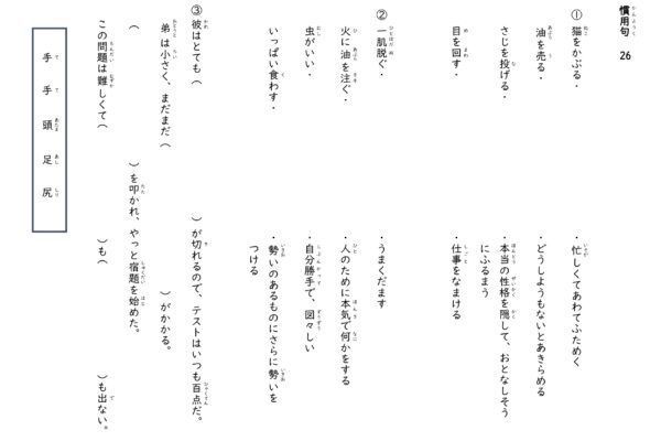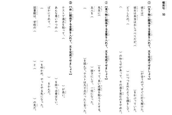 慣用句のドリル。 語彙学習の強化や中学受験にも使えます。