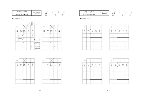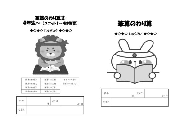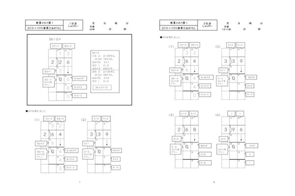 筆算わり算①の内容含む4年生以降の筆算わり算の内容になります。 授業用:1ユニット問題4種類 宿題用:1ユニット問題3種類×2